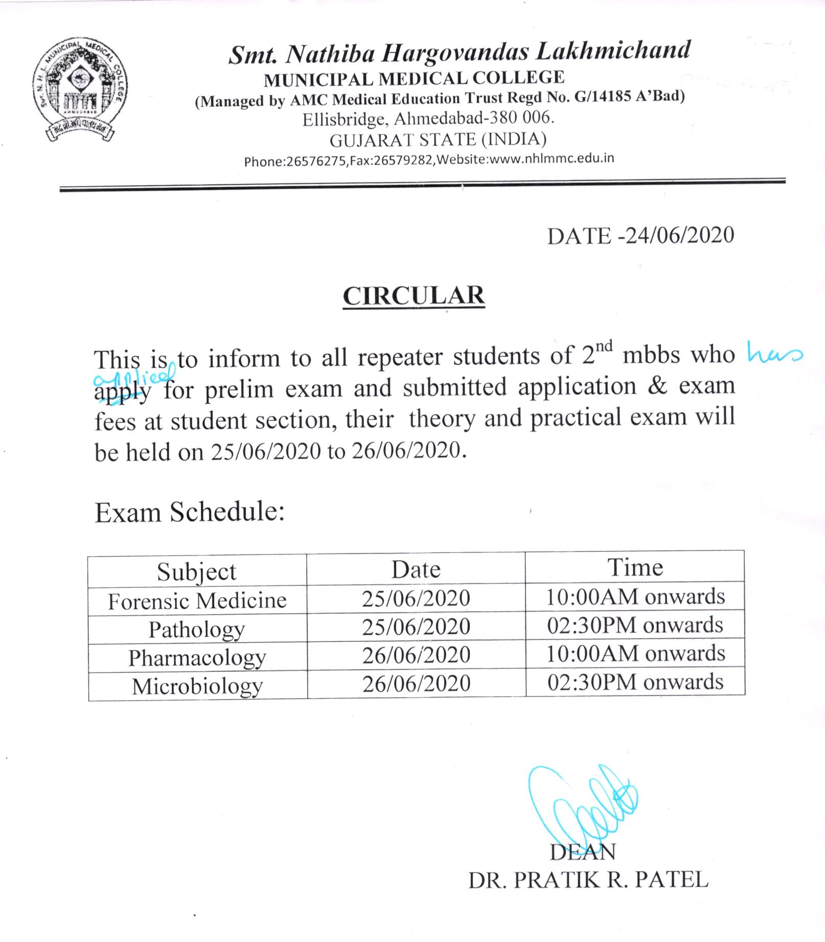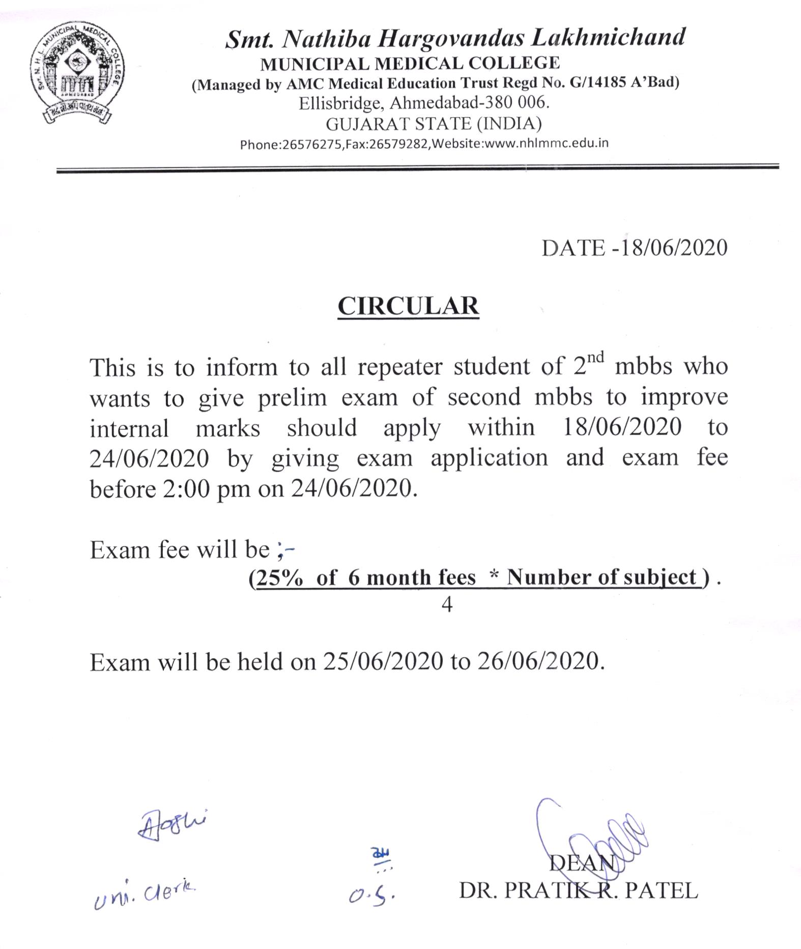 Circular-Prelim Exam for 2nd MBBS repeater Students.