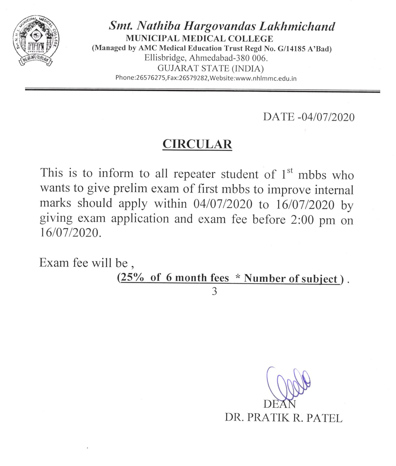 Circular-Prelim Exam for 1st MBBS repeater Students.
