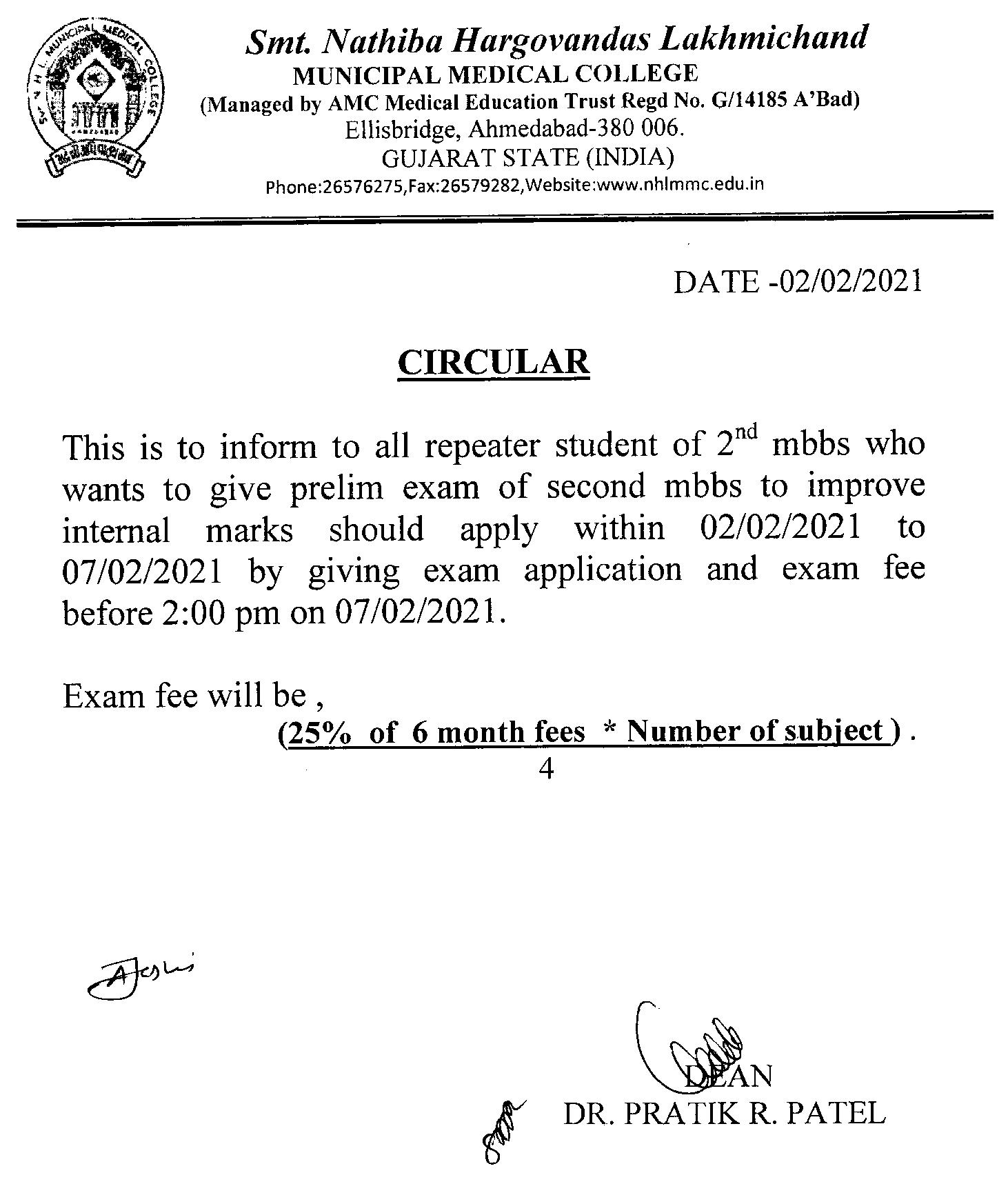 Circular – 2nd MBBS Repeater Students Prelim Exam