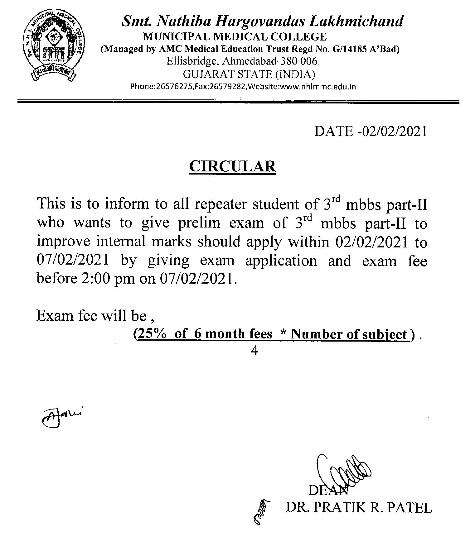Circular – 3rd MBBS Part II Repeater Students Prelim Exam