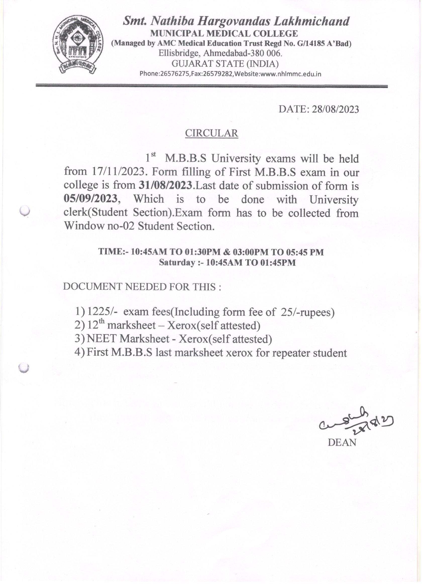 NOTICE: 1st MBBS Uni. Exam Form Filling.