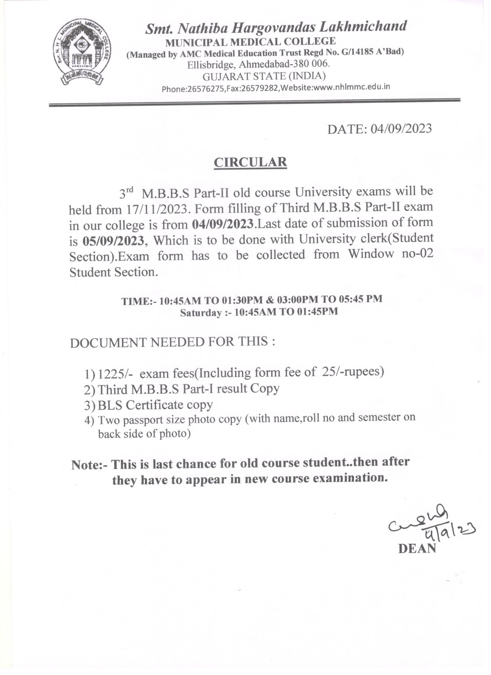 NOTICE: 3rd MBBS Part -II (Old Course) Uni. Exam Form Filling.
