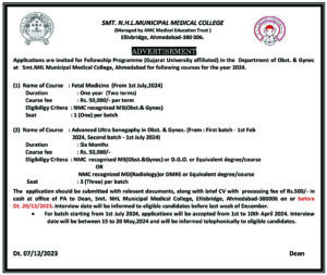ADVERTISEMENT – Fellowship in Obst. & Gynec – 2024